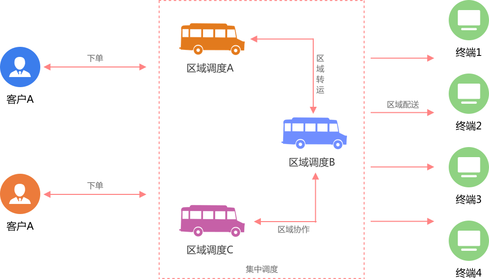 集中调度采用不区分作业平台的方式,对所有作业平台下的订单进行调度。区域中心调度采用区分作业平台的方式,各平台的订单只能由本平台进行操作。